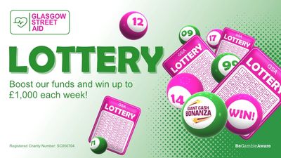 The lottery is provided by Yorkshire-based Giant Cash Bonanza Lottery Society which supports many causes. However, the money that you spend on your lottery numbers will, after the deduction of prize money and the reasonable expenses of administering it, be donated directly to Glasgow Street Aid. For every £1 you pay into the lottery, we will receive 60p to continue our work helping those in need each weekend.